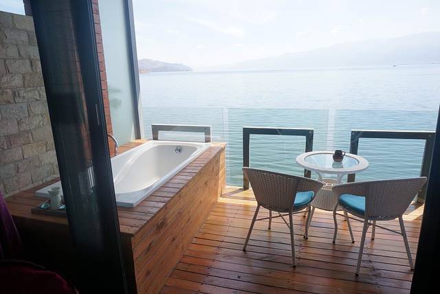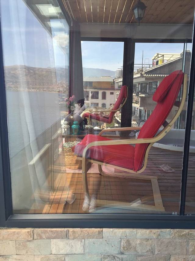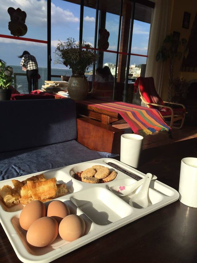 我们入住的客栈,天台有个白桌子,傍晚拍照光线很好。第二天为了跟风也去找了海地,老半天没找到,最后只好放弃沿着洱海边骑行。我们住的观海梵间客栈,正海景房1500一晚,风景无敌啊。我们订的是侧海景房400元一晚,好后悔没有定正海景房。