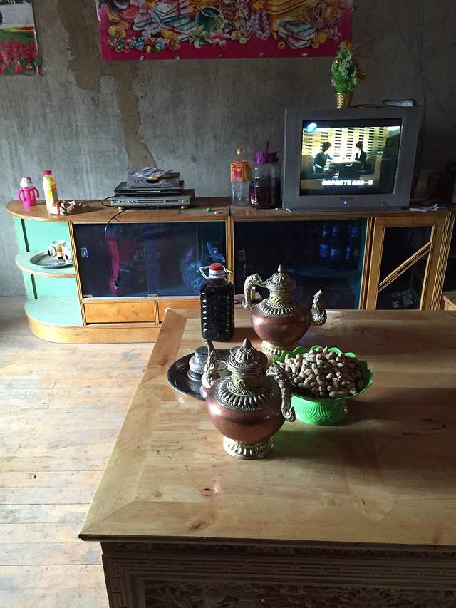 包车大叔带我们去了他家里,香格里拉藏族自治州,拜了他们信奉的神山,喝了泉水。相比较于景点,更爱未开发的风景。说如果我们七月来会看见满山的狼毒花和在他的家里烤乳猪。他给我们准备了酥油茶和青稞面,很香,但是喝不惯咸的酥油茶啊。