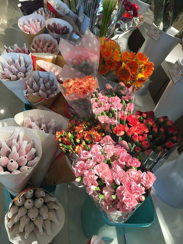 最后一天,丽江睡到自然醒,买了些伴手礼。收拾行李出发昆明机场。昆明不愧是花城,机场的鲜花很便宜,40块钱买了40朵玫瑰,在昆明的朋友说从昆明花市买一千朵玫瑰200块钱就够了。爱花的小伙伴都去昆明买花吧。哈哈。。。