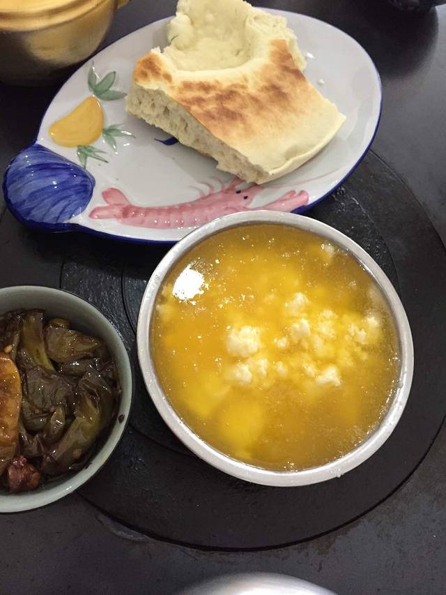 第二天早餐,酥油茶,奶酪和青稞饼。咸的酥油茶喝不惯啊