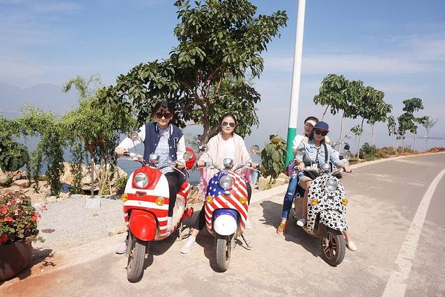 从大理古城包车一个小时左右赶到双廊大建旁村。几天下来的感受就是灰尘虽然大,周围都在建房子。但是那些客栈的海景房风景还是很给力。环湖骑行的一天,风特别大。最好还是戴上墨镜,不然风吹的眼睛睁不开。