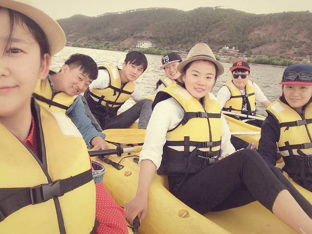 到了丽江我们定的一城楼客栈,老板给我们介绍了去拉市海包含车费、餐费、骑马、划船,共一百五一人。我们觉得挺划算,就同意了。后来几天在丽江古城很多旅行团给的同样项目才80左右。还好客栈让人觉得很舒适,老板娘很亲切又美丽,贵点也没关系啦。