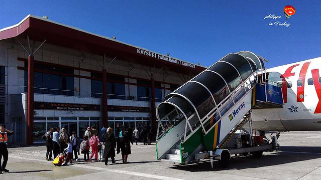 卡帕多齐亚的两个机场,一个是Kayseri开塞利机场,另一个是Nevsehir内夫谢希尔机场,我们到的是开赛利机场,两个机场附近都没有公交车或机场Havatas可以到达Goreme格雷梅,建议提前先预订接机。从Kayseri机场乘接机的车子到达Goreme要1小时,从Nevsehir机场乘接机的车子到达Goreme要40分钟。我是事先和酒店老板电子邮件,定了车来机场接我们,一人25TL(里拉)。