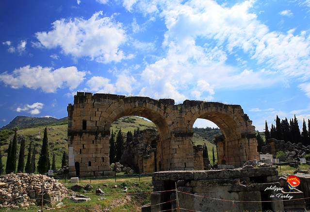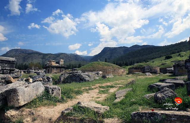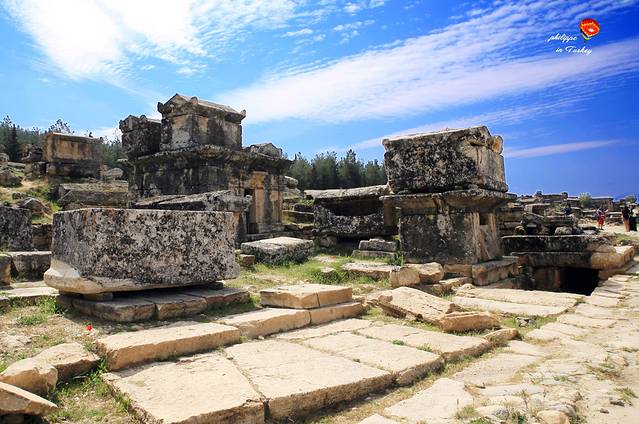 Hierapolis古城是Eumenes二世King of Pergamon于公元前190年期间建造的,在公元2至3世纪发展至鼎盛时期,成为古罗马浴场的中心。希拉波利斯与其说是罗马城,不如说是希腊城:城中供奉了希腊传说中的诸神,建筑风格亦深受希腊文化与宗教的影响。实际上,使用拉丁语的罗马人,虽然武力征服了远至中东的若干领土,但文化上却被更先进的希腊语所同化,直至拜占庭东罗马的开始几百年,其官方文化与语言都是希腊的。这座因温泉吸来四方人流的繁荣城市,又因频繁的震灾而导致人口锐减,逐渐演为一片废墟。
