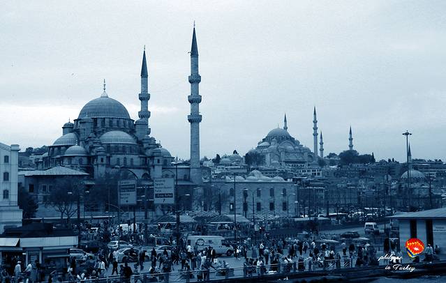 伊斯坦布尔不愧为清真寺之城,到处都是看得见的清真寺,近的是耶尼清真寺,远处那个是苏莱曼清真寺。这两个加蓝色清真寺被称为伊斯坦布尔的2.4.6.因为宣礼塔