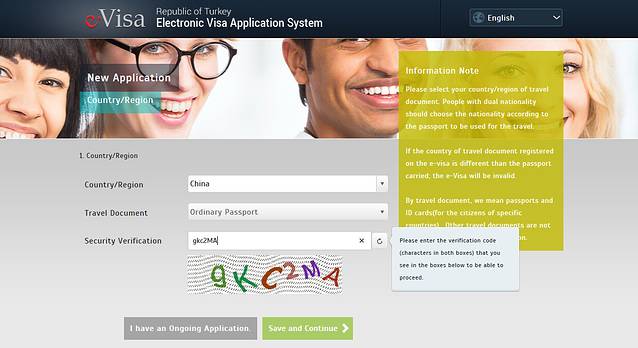 步骤三:当点击完Apply Now之后,第一行国家选择CHINA,第二行护照类型,选择ordinary passport(普通护照),第三行按照实际跳出来的验证码输入。