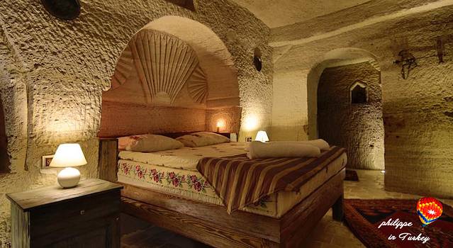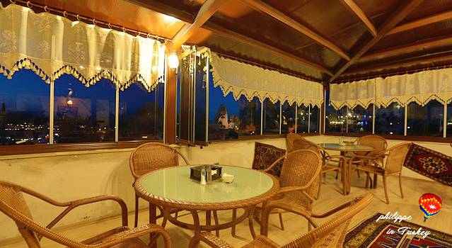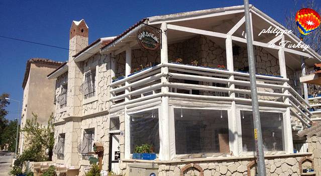 店很漂亮是一个家族在管理,步行5分钟到达镇中心,餐厅风景很好,供应传统土耳其早餐。严格来说,酒店不算是传统意义的洞穴酒店,有加盖的部分,各别房间是洞穴,主要价格不贵,也算可以接收了。酒店的老板不错,是个很热情小伙子,很帅,给我们很多哦帮助,在旅馆订的热气球是Universal公司的,挺正规的,不错。价格从95欧到180欧不等,在老板的建议下,我们选了120欧的,同时绿线和大巴车票都是让老板帮忙预定的,最搞笑的事情就是我们在离别的时候,差三分钟,打靶机要开车了,老板快速开来他的帕萨特拉着我们6个人和六个行李箱赶赴大把车站,真是,想起来都是爆搞