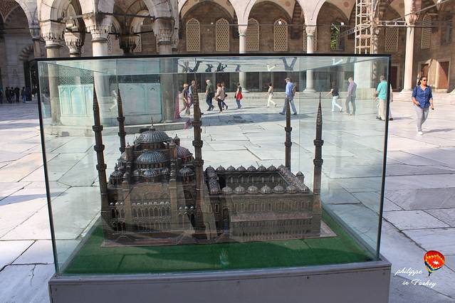 蓝色清真寺正中放着一处模型