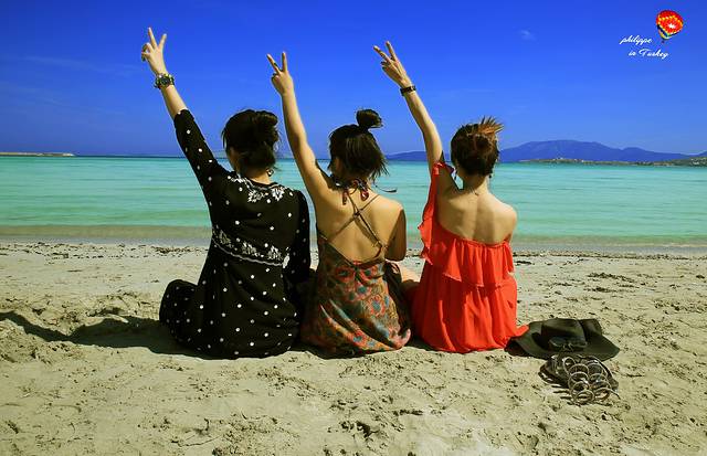 按照酒店老板告诉我的方向,我们顺利找到切什梅最好的海滩~看到这个海滩我才明白为什么说切什梅是爱琴海的度假胜地,这里游泳简直太赞了由于没带泳裤,只好漫步海边,大家开始疯狂自拍+互拍