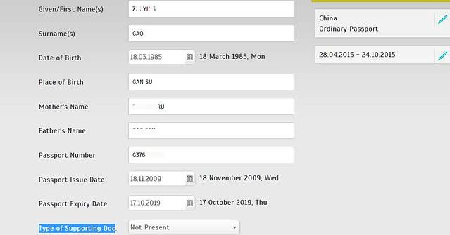国家和护照类型信息页面