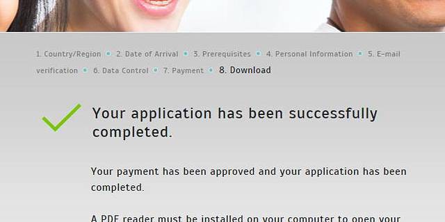 步骤十:缴费完成页面,也是正式通过审核页面,点击绿色框Download your e-Visa,下载个人电子签证,电子签证是以PDF格式出现。