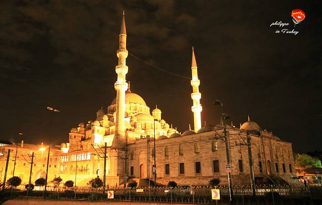 站在加拉太大桥上看夜景,远处的是耶尼出清真寺。也是16世界非常伟大的建筑,是最正统的奥斯曼风格。与蓝色清真寺的差别很大,不追求华丽,但规模宏大的空间给人一种大气稳重的感觉,夜晚在的耶尼清真寺在灯光的照耀下是那么富丽堂皇。