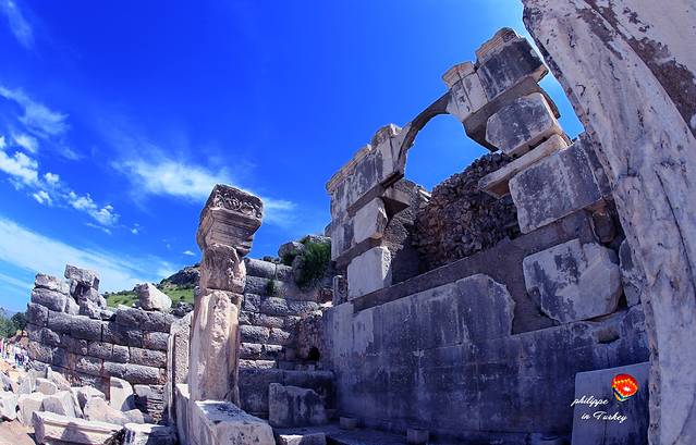 埃菲斯(Ephesus), 旧名以弗所,紧邻爱琴海。大约公元1000年前,艾奥尼亚人从希腊迁居至此,在此兴建城市,因此这里的建筑遗址颇有希腊风格。公元前7世纪被辛梅里安人攻占,世界古代七大奇迹之一的阿尔忒弥斯神庙被毁。