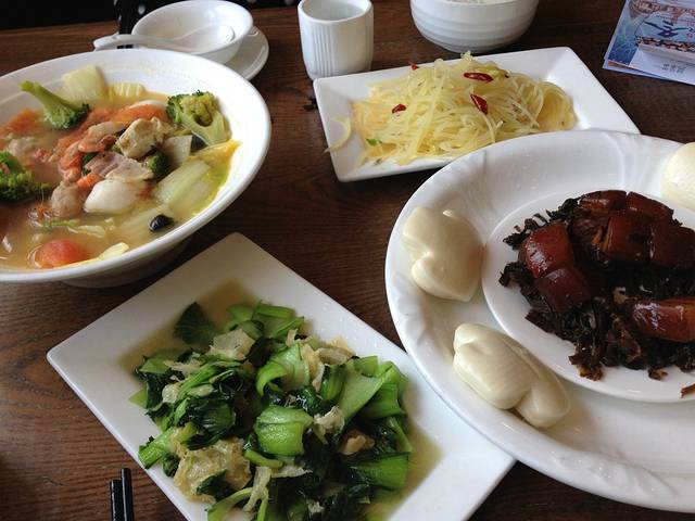 仓桥直街的状元楼网上很有名气,排了好几个号吃饭,环境不错,性价比却很一般,两个人四个菜90块钱。
