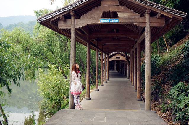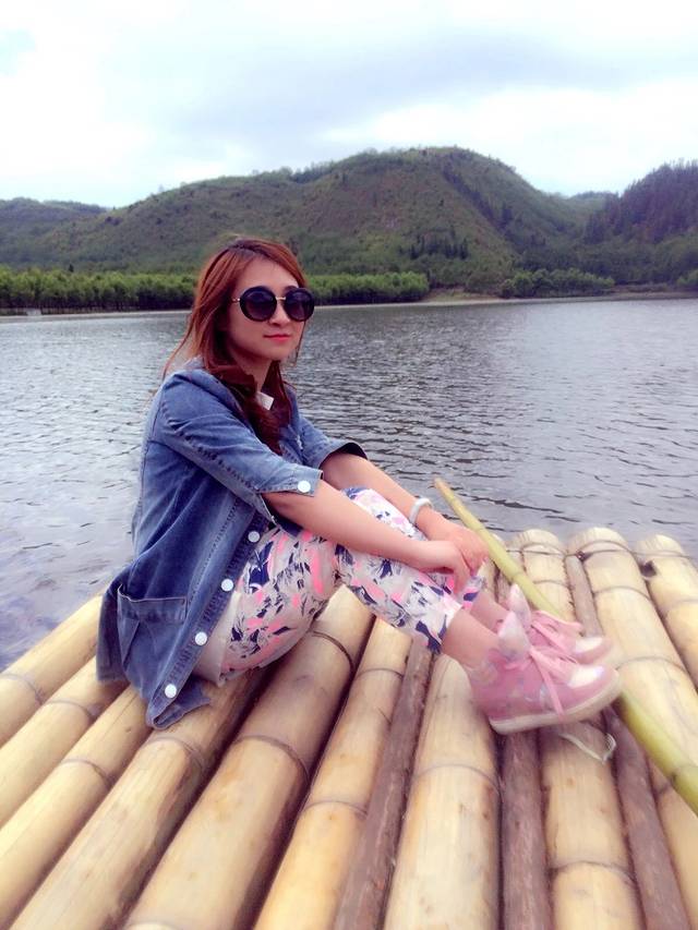 死火山形成的堰塞湖,在湖面划个竹筏,周边非常安静。