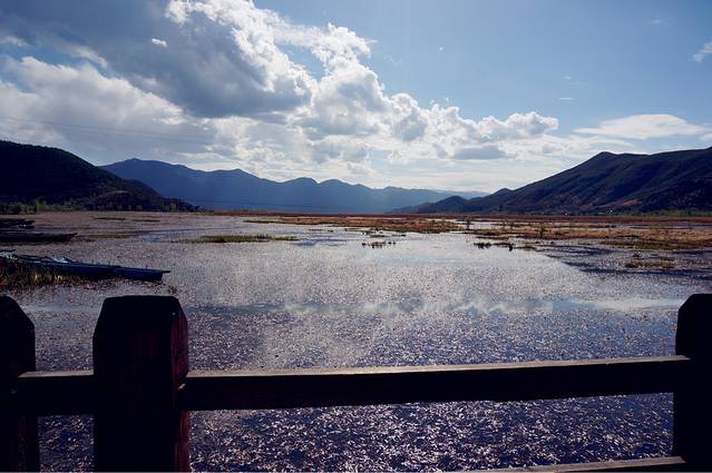 蓝天白云山水一线,泸沽湖处于云南省和贵州省交界处,山的这边是云南省,另外一边就是贵州省了。