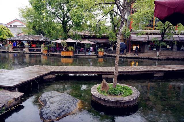 小雨中的束河更加宁静。