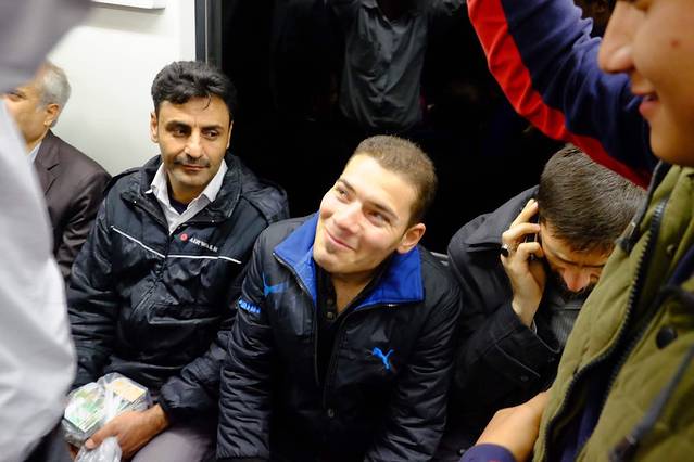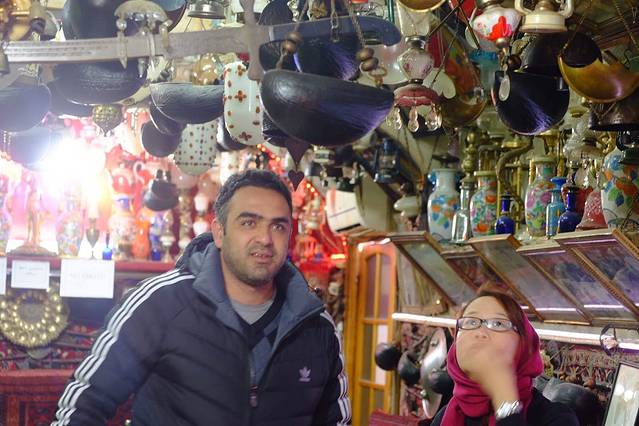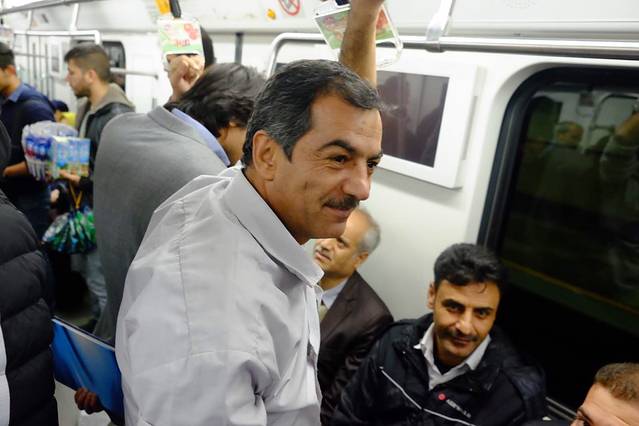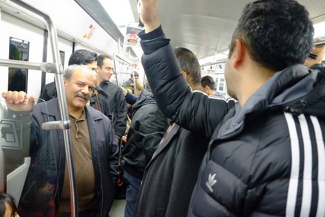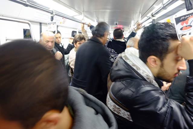 跟着Omida跳上即将开动的地铁 站定发现自己周围都是男性乘客 猛然记起伊朗地铁是男女分乘的 询问Omida是否可以 他说男人不能上女人的车厢 女人里的老人孩子一般是允许的 而外国年轻女人没经验上错车也是可以原谅的…呵呵 我肯定属于后者了