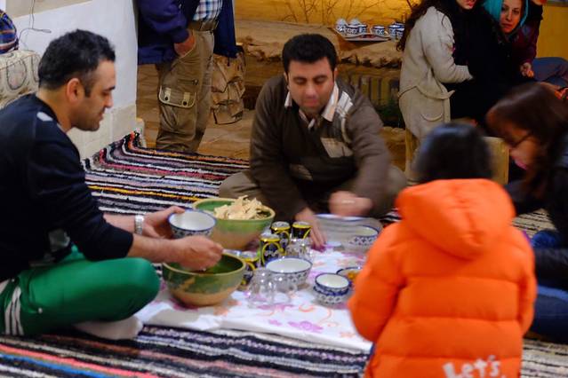 中午11点德黑兰出发 寻找Farahzad 这个卡维尔盐漠深处的游牧部落小型定居点 虽然全程不到800公里 但这里非常偏僻 又没有导航 司机Medeza和Omida一路都在打听 开错了几个岔道 天越来越黑 没有信号…终于在晚上9点左右找到了Lodge 一下车 我就知道 来对了 除了我们 这里只有老板 伙计和来旅行的伊朗人Mary一家 毫无悬念的热情 我们聚在一起烤火 晚餐 抽水烟 做游戏…