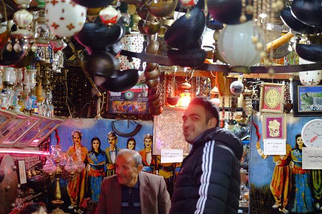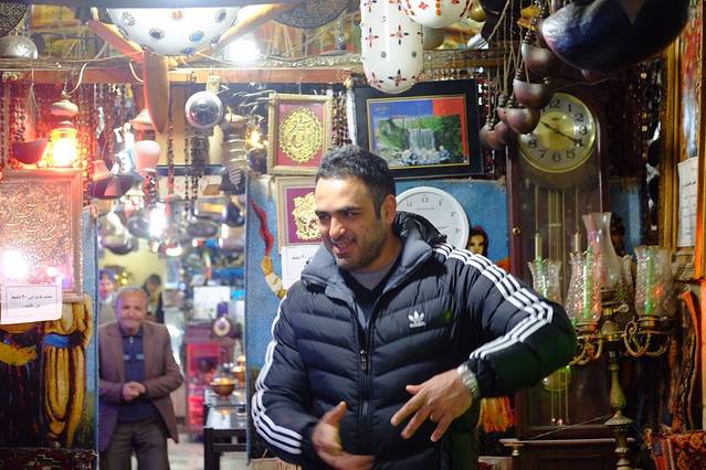 伊玛目广场上无聊地溜达 炙热的太阳晒的人软塌塌 游离的目光无意间对上一双渗着血丝的瞳孔 老迈 浑浊 甚至有点令人颤栗 来不及避开的瞬间 这双眼镜的主人用流利的英语向我问好 我有点诧异 老人的口音比那些热情的学生还好 并且没有一定要合影的意思 我马上就没有戒备地问他 这里有当地人的茶室吗?…