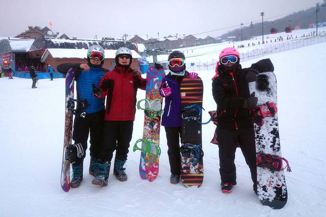 单板,我也是第一次耍。小高主要是辅导基友和爪,我则是属于旁听类型的。单反的诀窍是:不畏恐惧,人站直,重心放双腿之间,横着板慢慢用后刃下。如果失去重心,把重心转移到前脚,这个时候可以实现转弯,之后再用后刃下。需要刹车的话就踮起脚尖,重心放脚后跟,蹲下,力往下压。