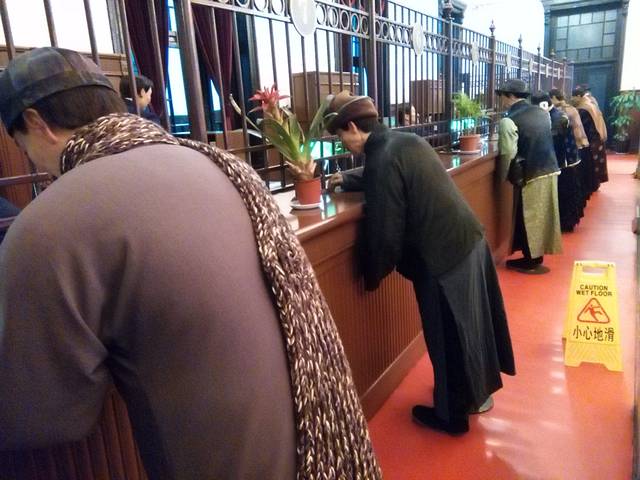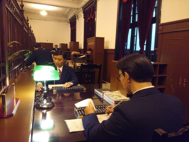 张帅府旁边就是金融博物馆,刚进门内是银行支行的设计,可以看到提钱存钱的各位。只是一个房间内有那么多蜡像实在是有些恐怖,想到了美国的电影《恐怖蜡像馆》