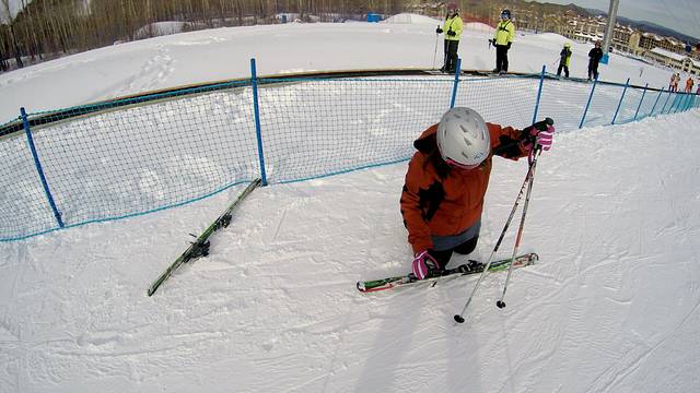 格里斯在遭遇了无数的挫折之后,对滑雪产生了恐惧。想要站起来都觉得困难。如果敌人越是强大,那就要比敌人越狠才行