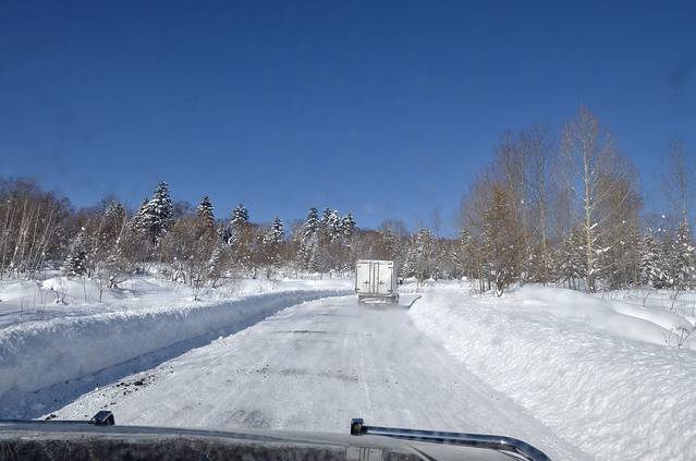 除了松江河镇火车站,我想寻觅下传说中的万达班车,可是冰天雪地的,除了黑车外就是黑车。黑车标准价是40一部,我砍价到60两部。司机见我想叫面包车(50一部),嚷着对我说:他们都是黑车,我们正规的万达车,如果你敢乘他们的,我就举报,让你们谁都走不了。