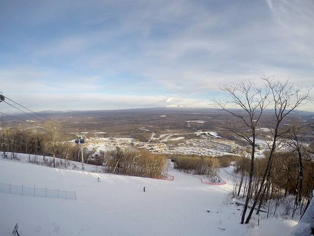 今天的天气格外好,可以在滑雪的峰顶远眺长白山,这意味着明日必定多云