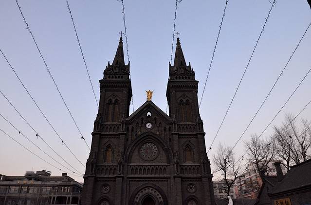 天主教堂和上海徐家汇的天主教堂长的差不多样子,一个设计风格。相比之下基督教堂就有些难看。