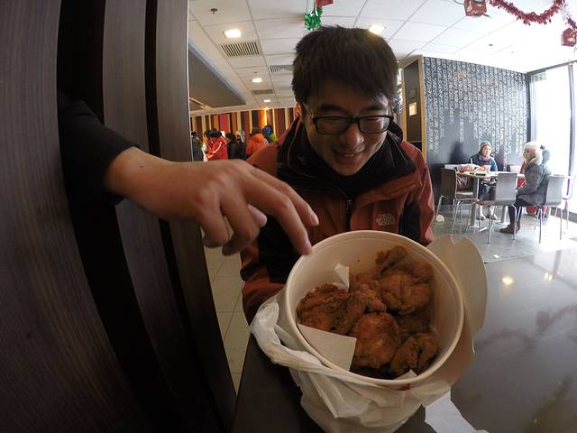 由于长白山度假村内的饭店价格实在太贵,只能去吃平民窟的食物-快餐。想不到kfc里面都是人,做了这辈子最屌的决定-在m记吃kfc。