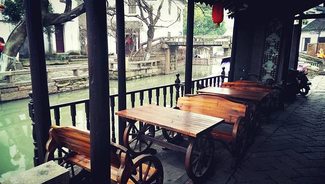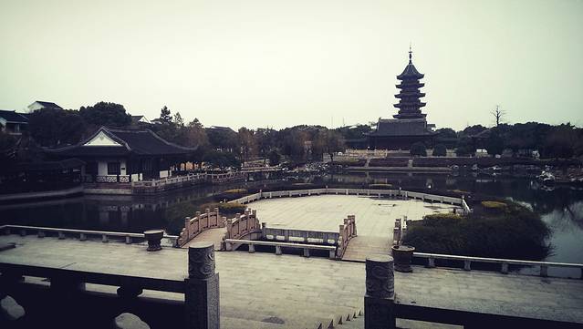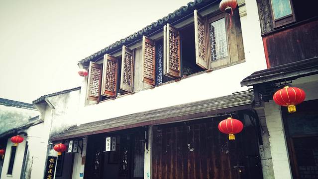 周庄一个有名的景点,但是淡季整修没法过去,只能来张远景