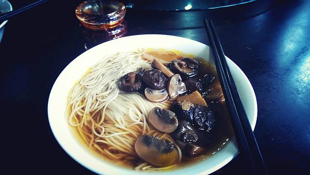 苏州的第一顿饭也是在西园寺,观音面10/碗,放了香菇、鸡腿菇和竹笋,分量很足,是苏州常见的细面,味道棒棒的。