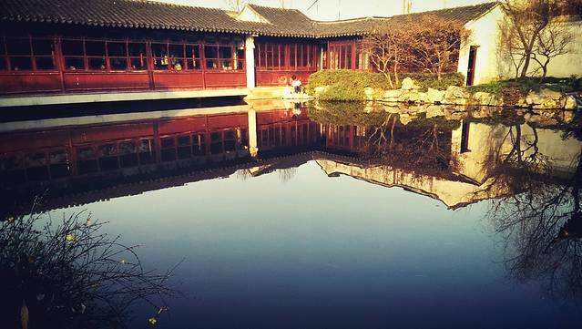 从周庄回来已经下午了,所以去了艺圃,艺圃在老城区的一片居民区里,周围环境真的是苏州人民的现实生活写照,艺圃很小但是有一个全国最长的水榭。