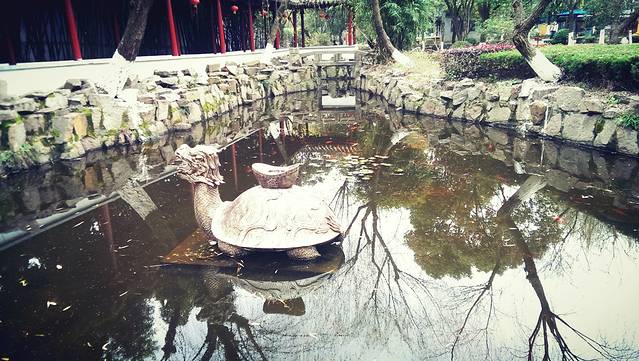 放生池,里面好像有一只四百多年的老斑鳖,但是介绍说只有夏季天气炎热的时候才可能出现。