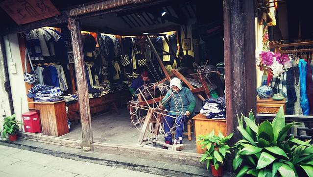 手工纺织哎,第一次见...