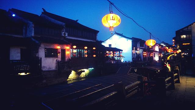 平江路的夜景不错,路遇很多歪果仁...有的店在放苏州评弹,很有意思