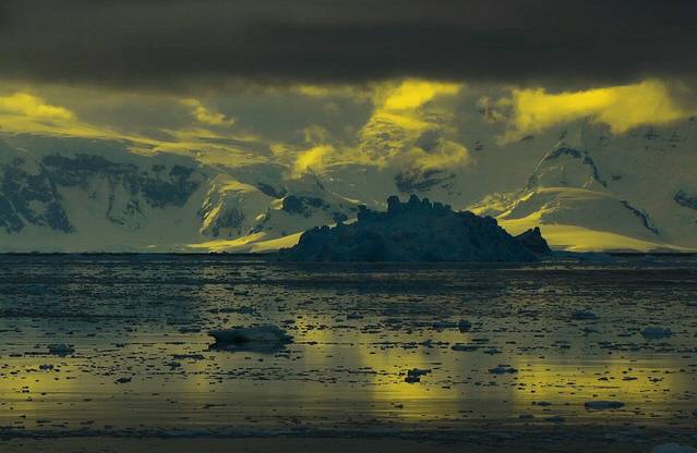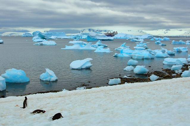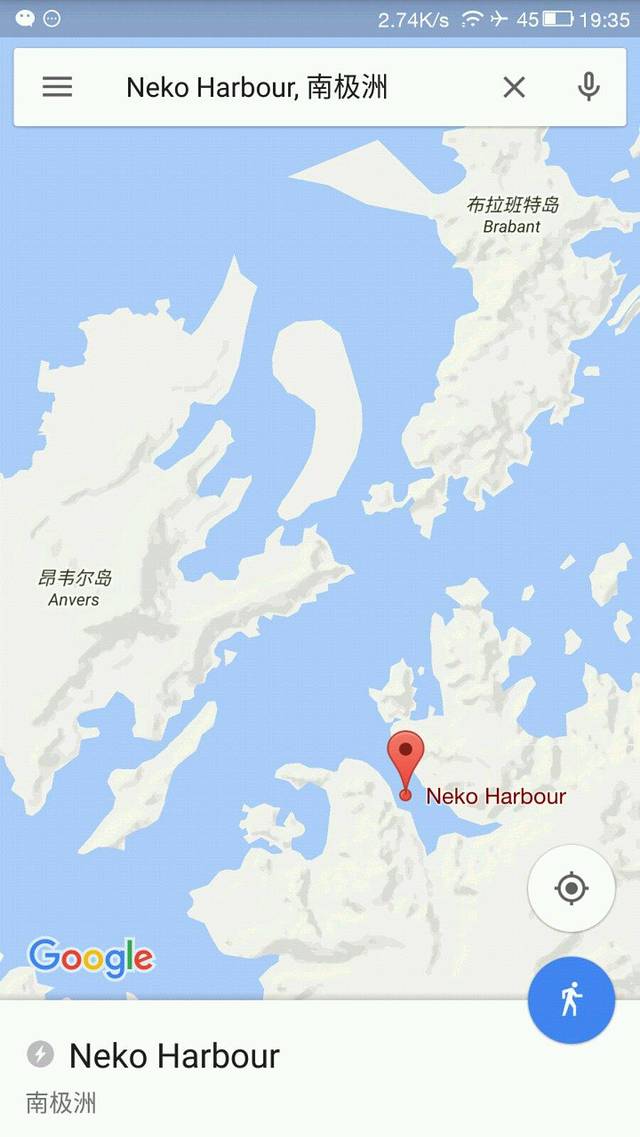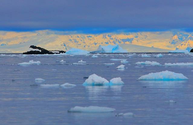 NEKO HARBOUR (南纬64º50’)。 这里是南极半岛上的一个小海湾,陆地在这里画了一个“U”型,“U”型的底部平缓,两边是陡峭的峭壁和冰川,港湾里几乎布满了形状各异的浮冰。