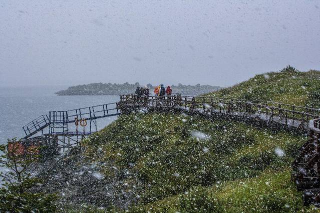 乌斯怀亚,这座世界最南端的城市,虽然被成为世界尽头,但是3号公路才算是真正的尽头,冒着鹅毛大雪赶到这里,3号公路由柏油马路变成了结实宽敞的土地,终点的前面是一排排的木桩挡在前面,再向前就是南极和大西洋群岛。雪太大了,已经没有人敢用相机拍照了,咱也是第一次在这么大的雪中用相机拍照,5dsr收起用1ds MII!