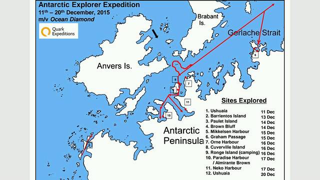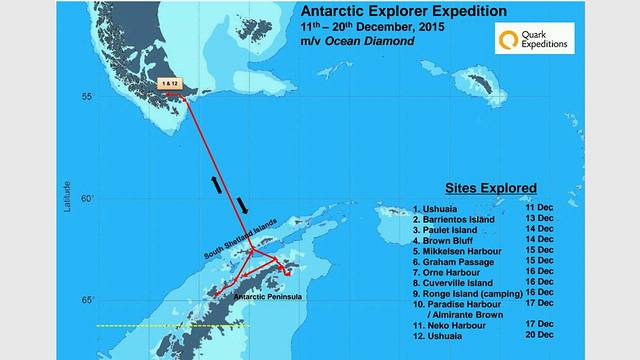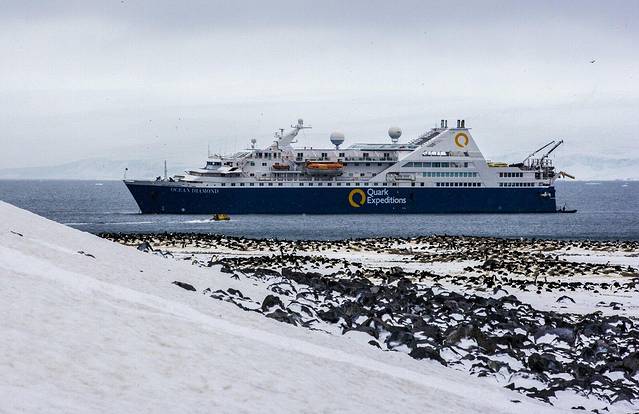 我们这次的船是QUARK公司的海钻石(ocean diamond)号。走的线路1。南极半岛六次登陆,九次巡游。
