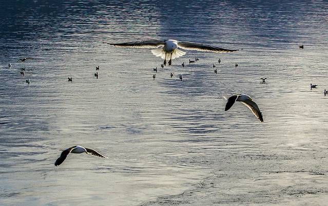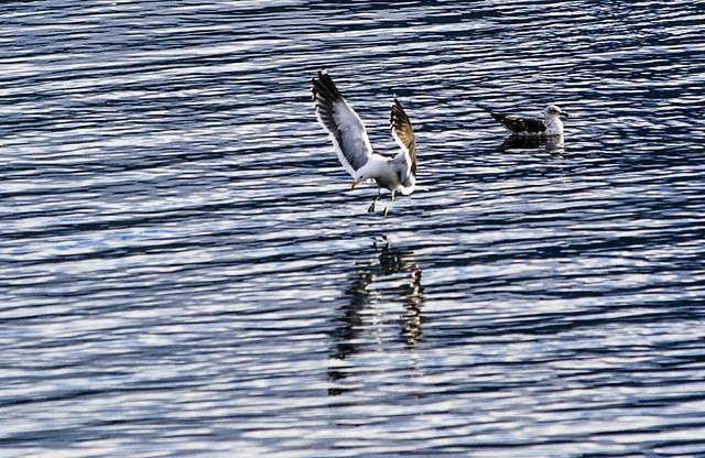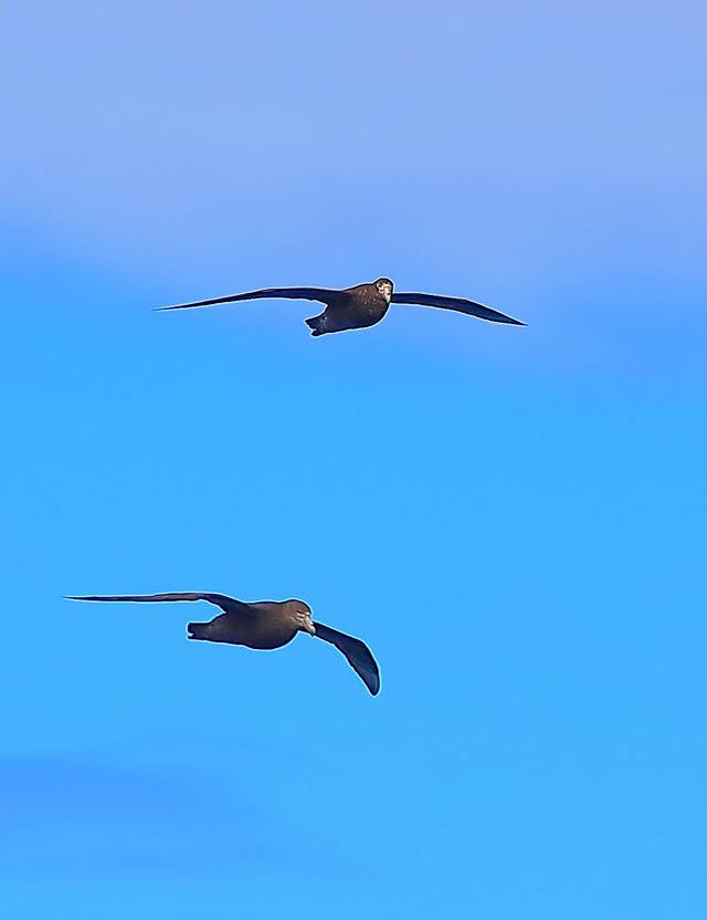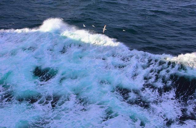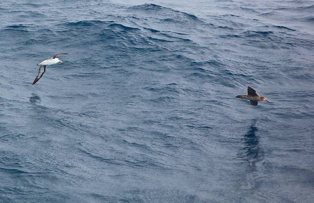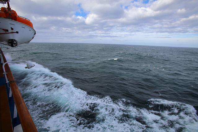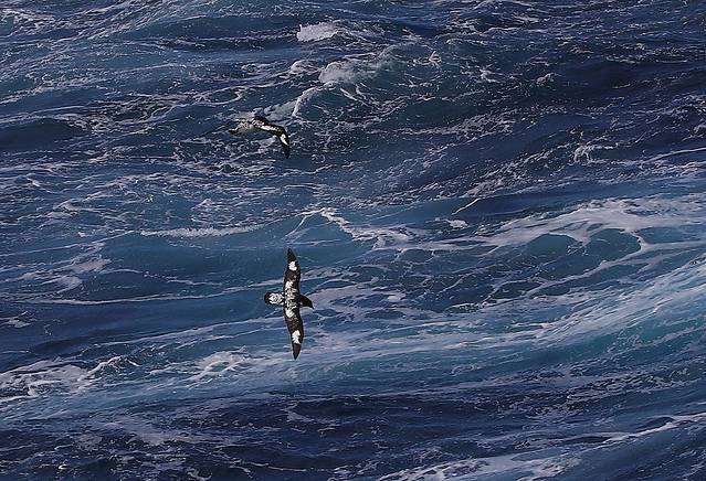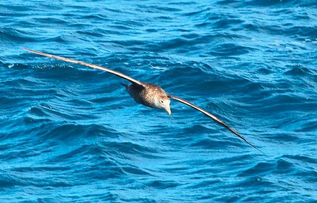 经过一天一夜的颠簸,尽管船还是有些晃,可已经适应这种晃,不怕晕船了!关于过西风带的十字歌:“一言不发,二目无神,三餐不吃,四肢无力,五脏翻腾,六神无主,七上八下,久(九)卧不起,十分难受”,咱是领略不到了!可以上甲板拍摄护送我们的飞鸟了!