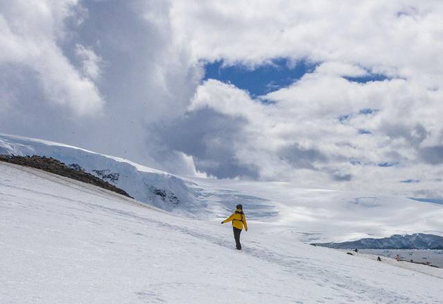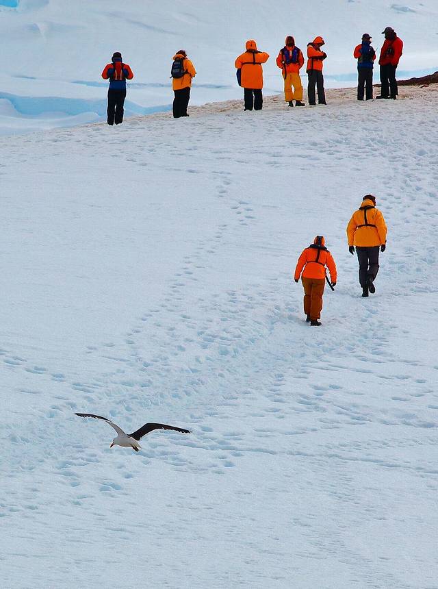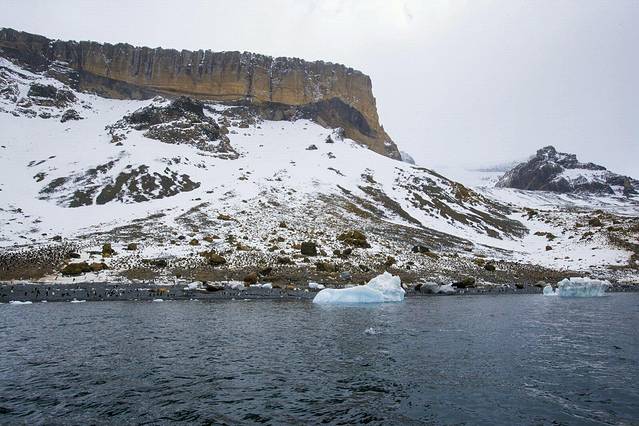 继续航行下午到达布朗(brown bluff)断崖,真正的南极大陆!前一天登的是南设得兰群岛,理论上还不算纯粹的南极。而布朗断崖号称位于南极“大陆”上,却也只不过是这块冰雪大陆伸到温带的一个小尖角,这里是南纬63度,距离极点远着呢!