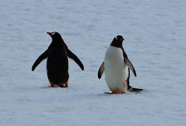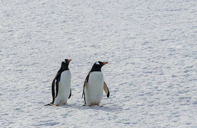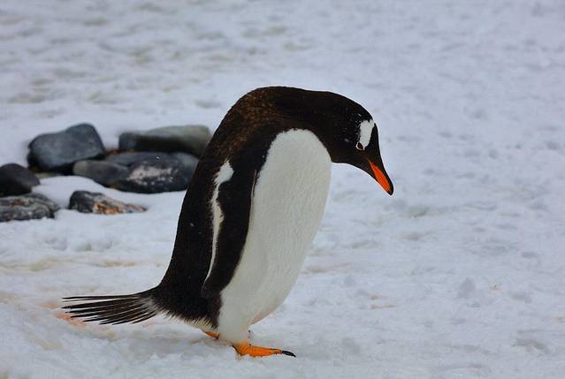 巴布亚企鹅(学名:Pygoscelis papua),又名白眉企鹅、金图企鹅,体形较大,身长约60-80厘米,重约6公斤,眼睛上方有一个明显的白斑,嘴细长,嘴角呈红色,眼角处有一个红色的三角形,显得眉清目秀。因其模样憨态有趣,有如绅士一般,十分可爱,因而俗称“绅士企鹅”。