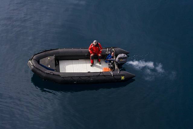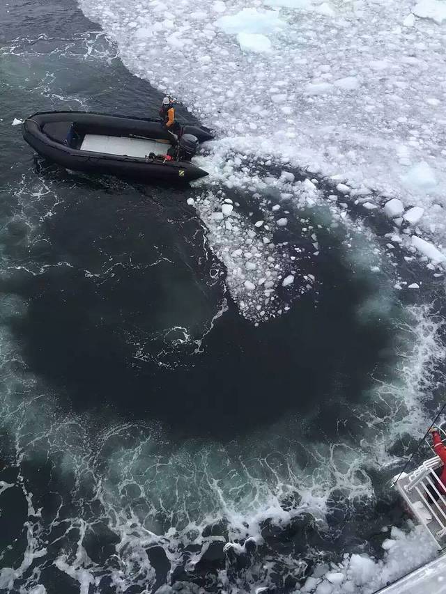 当冲锋舟从浮冰上压过时,与冰的冲撞和碾压发出的阵阵轰响,对船上的我们可真是考验啊!