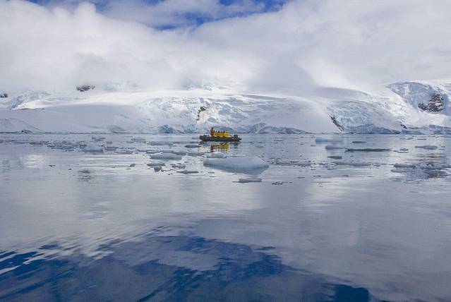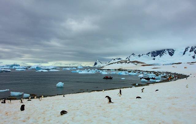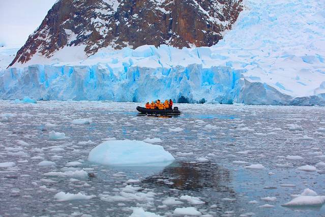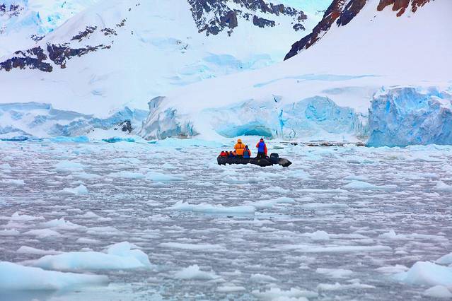 下午到达Neko Harbour 64º 50.5’ S / 062º 32.6’ W 。纳克港是金图企鹅的聚集地同时也是旧阿根廷难民的避难所。她安逸的平躺在众山环抱的安洛尔湾(Andvord Bay),雄伟壮观的冰川成为她天然的屏障。由于浮冰太多太厚,登岛条件不行,只能改成冲锋舟巡游。行程多变是南极游的一个特色。