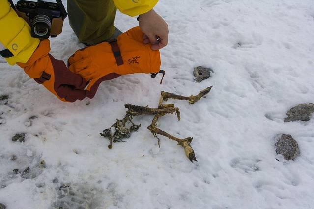 探险队员帮忙捞出的黑冰。后面的美女是北京姑娘小王,从美国加入了这个探险队。这个美女老外好像是个生物学家,带小王的老师。