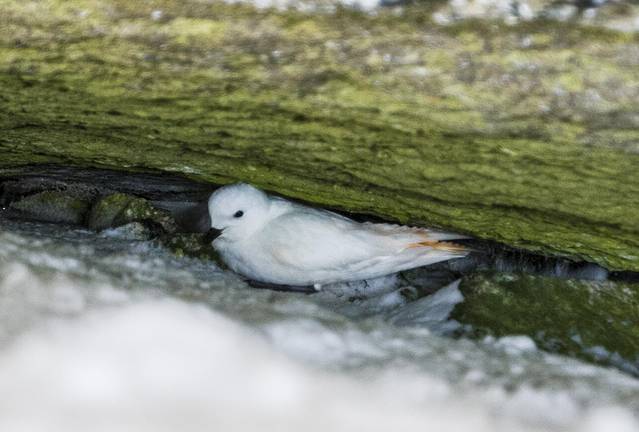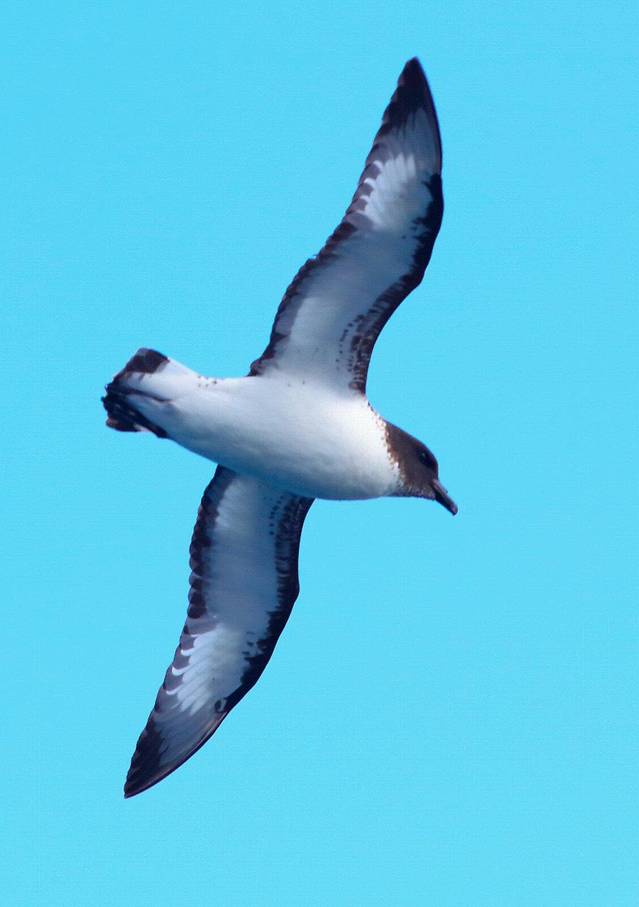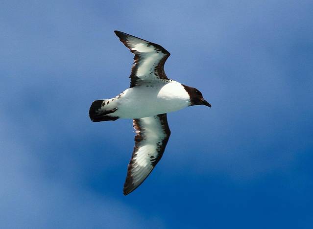 岬海燕 (或海角剃,Cape petrel) 学名 Daption capense 体长 38-40 cm 翼展 81-91 cm 数量 数百万只 分布 遍布南极大陆沿岸及亚南极岛屿,但在整片南方海洋都可能遇上它们。