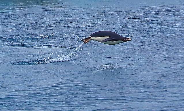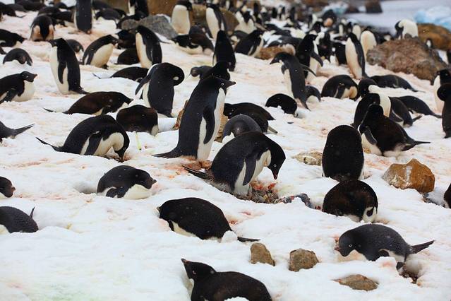 阿德利企鹅(学名:Pygoscelis adeliae)在企鹅家族中属中、小型种类,体长72-76厘米,具有攻击性。它适于海洋中的游泳生活,翼成鳍状,变为游泳器官。阿德利企鹅的食物主要是鳞虾、乌贼和海洋鱼类。它们喜集群活动,群体可达几十只到上百只,在繁殖期形成1雄1雌的配偶关系,并集大群在陆地繁殖。是南极最常见的企鹅。