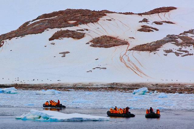 小型船只,载客100多人。上岸旅行的时间要长很多,可以更靠近南北极附近岛屿航行,还可以航行于一些著名的峡湾,更近距离在船上欣赏瑰丽的极地自然风光。可以根据天气、浮冰等情况更灵活的安排航行路线和活动日程,充分利用在南北极的每一天。按南极公约规定,在南极登陆地点一般一次仅允许不超过100人同时登陆。100多人的船可以一次全部安排下船坐冲锋舟登岛与沿岸巡游。大型船只,200人以上。这种游轮一般来说,更加舒适,在风高浪急海域更平稳,也能更快的穿越德雷克海峡,但是登岛会有问题(一般还有20多探险队员陪同)。500人以上的邮轮则禁止在任何地点停靠。