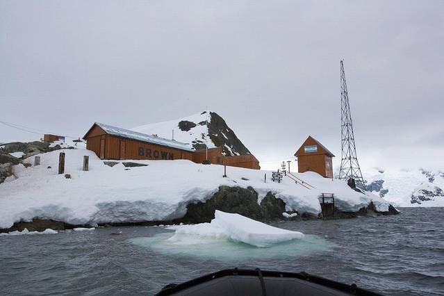 天堂港岸边有几座红色的小木屋,一块标志板上写着:南纬64度53分—西经62度53分,岸上的小红房子竖立着“BROWN”的标志,是阿根廷重要的科考站、1951建立的“布朗海军上将站” (Almirante Brown)。这里发生过悲剧,有人曾经一把火将科考站烧成了灰烬。这所科考站曾经常年居住着科学家,前几年一支科考队曾在这里居住研究了一年,当来年(1984年)需要换班回国时,国内来换班队伍的随队医生不能来了。于是新队伍到时,别人都能回,原来科考医生被通知还要再留一年。听到这个消息后该医生的精神立刻崩溃了,表态说不让我回我就放火。可是没人当真,结果当天深夜该医生真就一把火将科考站点着了,阿根廷只能派船将科考队全部撤回。